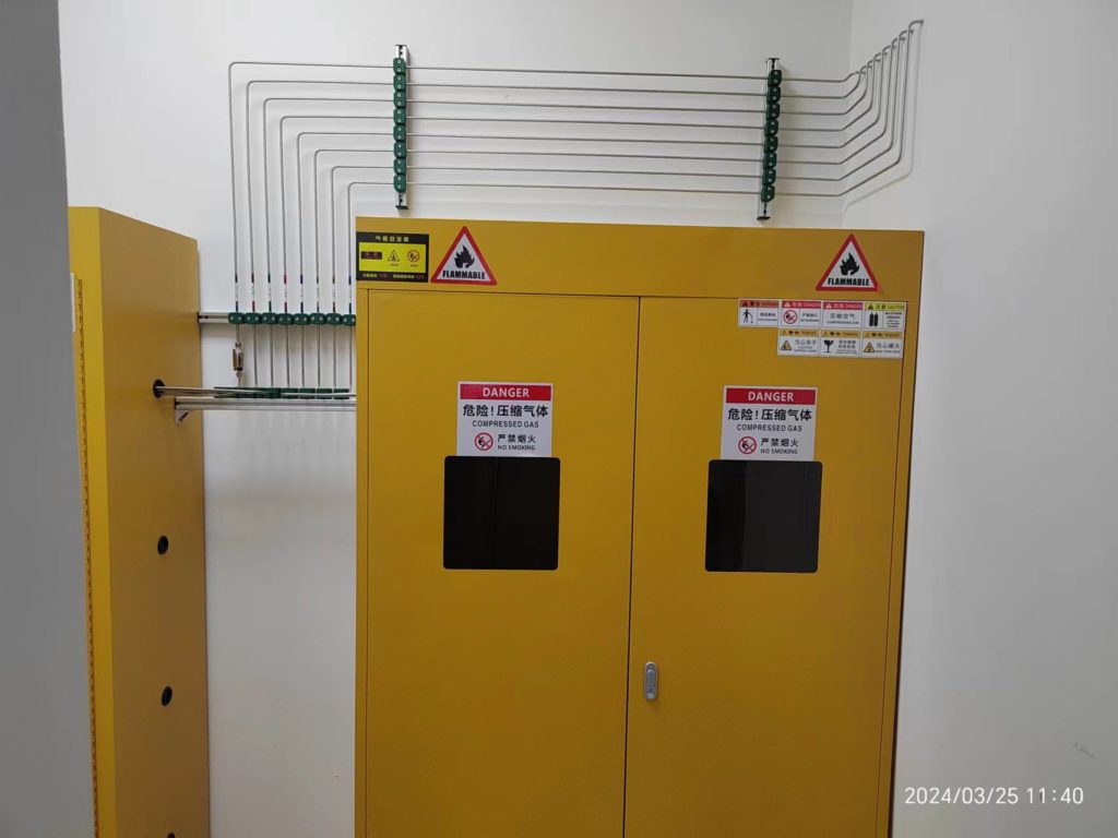 近日我司完成了浙江大學電鏡實驗室 HF5000環境原位球差校正透射電鏡的氣路管線安裝,同時完成為電鏡配套的7氣路配氣供給控制柜,該控制柜配備氣體凈化系統以及遠程操作模式,控制柜上位機可以根據用戶需要完成程序配氣功能,可在一個工作時間段完成多種氣體,按照一定比例有序進入測試腔完成對樣品吹掃還原工作。