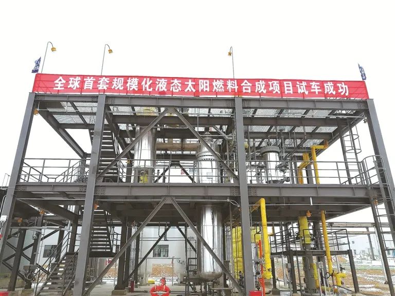 2020年1月,項(xiàng)目在蘭州新區(qū)試車成功,完成了全球首套千噸級(jí)規(guī)模太陽燃料合成示范,邁出了將太陽能等可再生能源轉(zhuǎn)化為液體燃料工業(yè)化生產(chǎn)的關(guān)鍵一步。