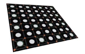 二維超導量子比特芯片示意圖, 每個橘色十字代表一個量子比特。圖片來源:潘建偉團隊