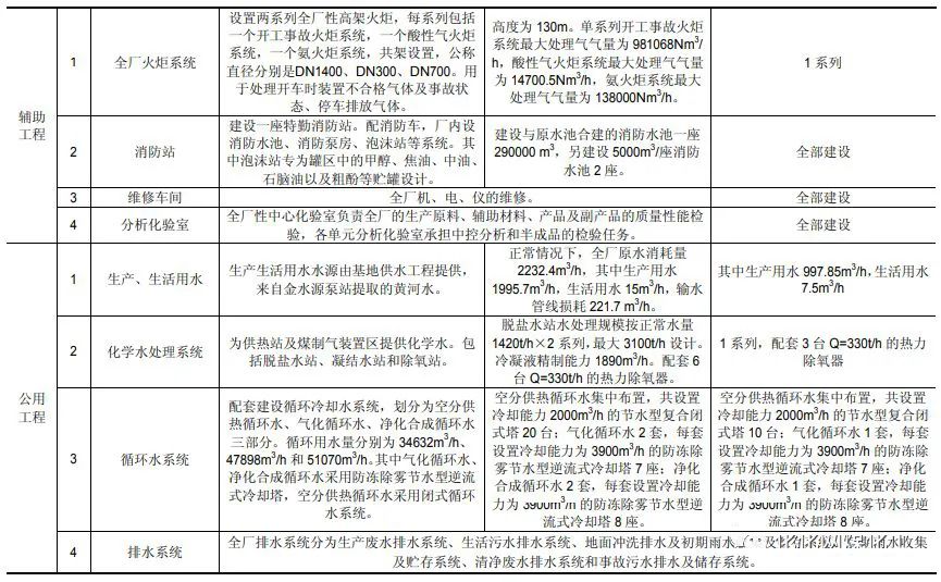 該項目分二期建設,分期驗收。其中一期建設20億立方米年煤制天然氣規模,主體工程系列數為總規模的50%,并配套建設相應規模的供熱鍋爐(×480t/h,三用一備)、污染防治設施;儲運工程中除灰渣儲存以及輔助、公用等工程中除無必要分期建設工程外(如消防站、維修車間、分析化驗室、空壓站等),其他均按總規模的50%建設。剩余未建設工程安排至二期建設。