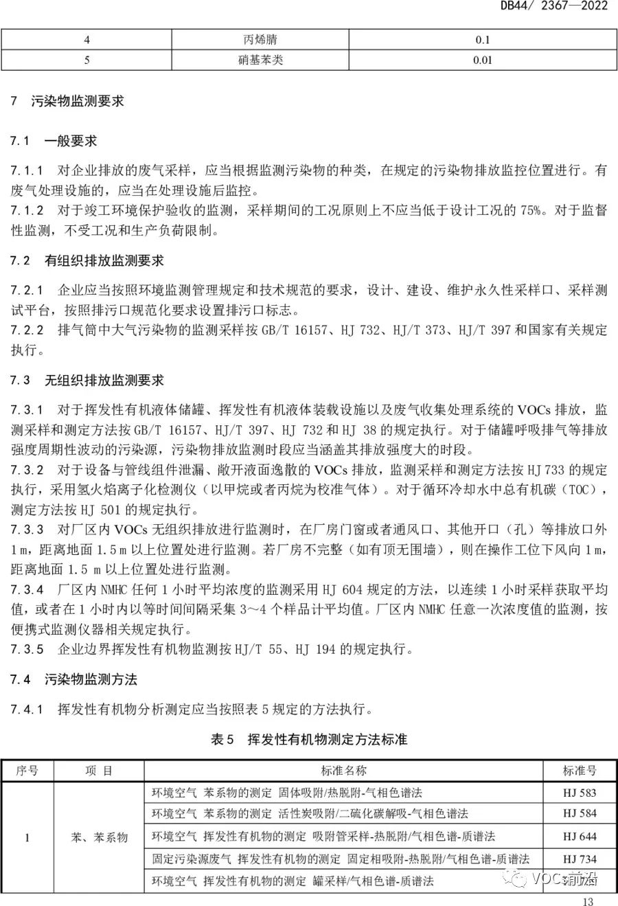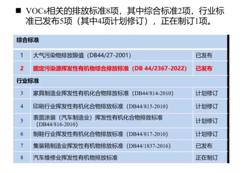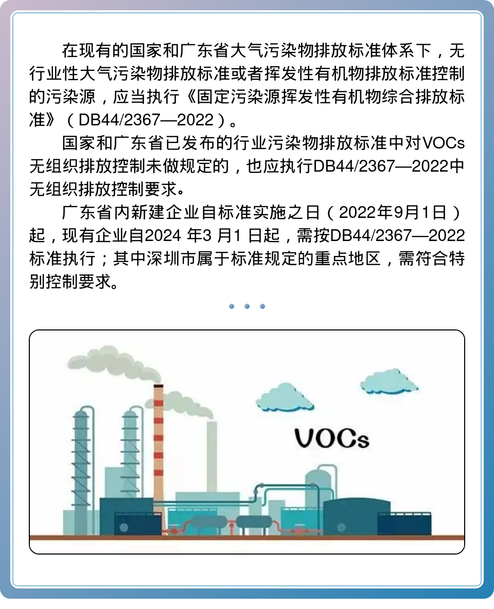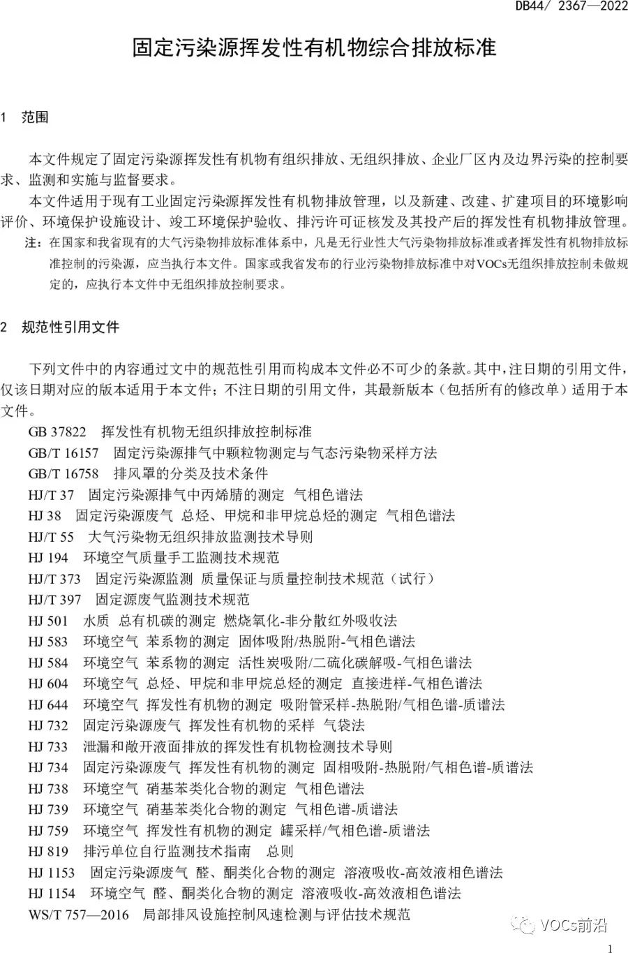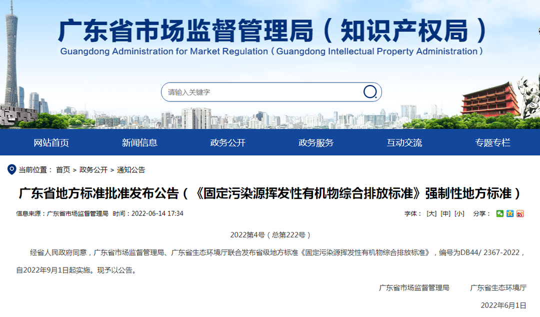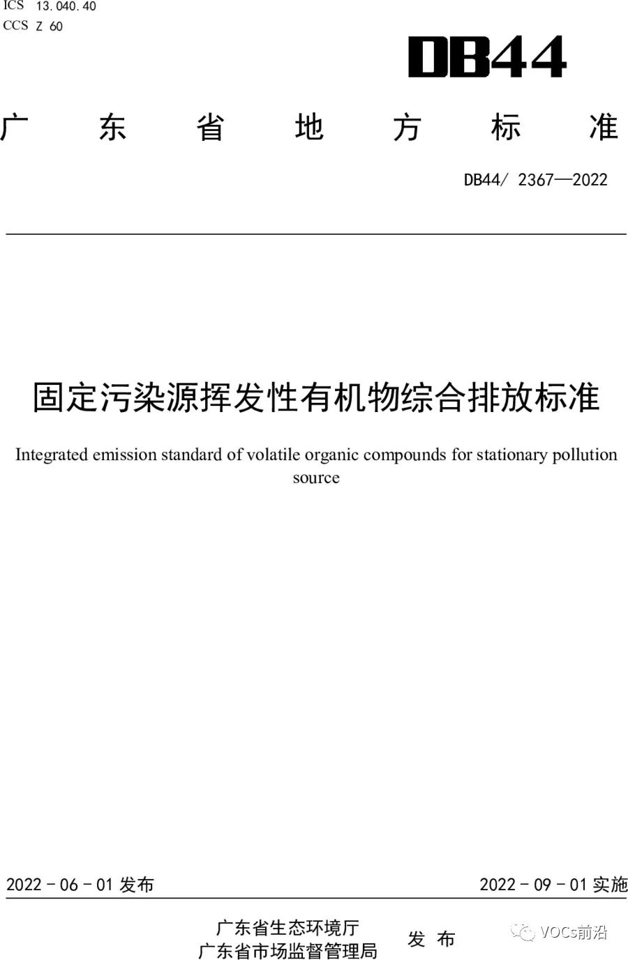 固定污染源是揮發(fā)性有機(jī)物排放的重要來(lái)源之一,我國(guó)多省市已經(jīng)出臺(tái)了工業(yè)VOCs綜合排放標(biāo)準(zhǔn),以彌補(bǔ)行業(yè)標(biāo)準(zhǔn)缺失的不足,對(duì)眾多涉VOCs排放的固定污染源實(shí)施監(jiān)督管理。2022年6月1日,廣東省市場(chǎng)監(jiān)督管理局、省生態(tài)環(huán)境廳聯(lián)合發(fā)布省級(jí)地方標(biāo)準(zhǔn)《固定污染源揮發(fā)性有機(jī)物綜合排放標(biāo)準(zhǔn)》(DB44/ 2367-2022)。該標(biāo)準(zhǔn)為強(qiáng)制性地方標(biāo)準(zhǔn),自2022年9月1日起實(shí)施。